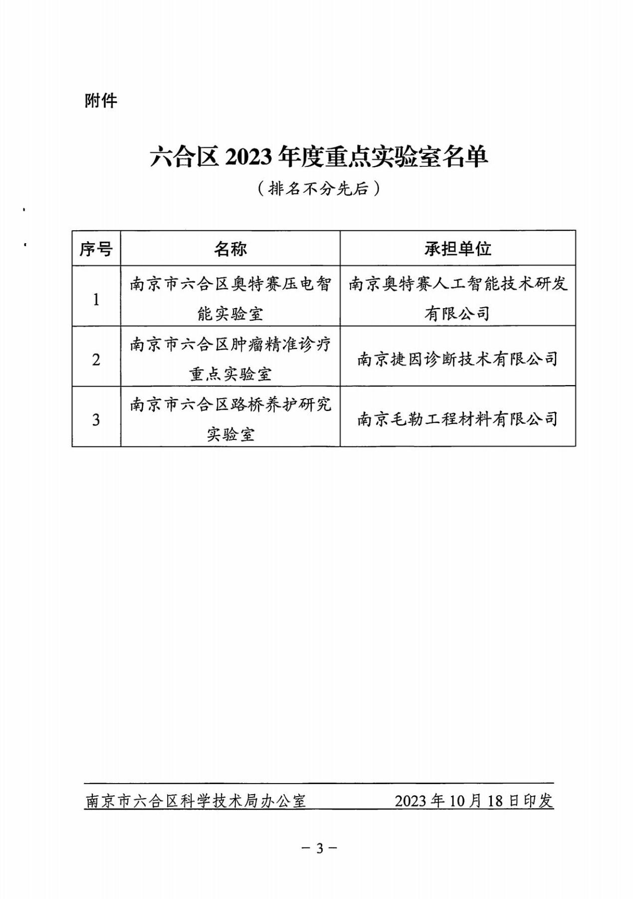 為深入實施科教興國戰略、人才強國戰略、創新驅動發展戰略,引導實驗室強化人才培養、基礎研究、應用基礎研究和支撐產業發展的作用,為建設引領性國家創新型城市提供更好創新平臺支撐,六合區科學技術局結合企業自身高層次人才引進需求、科技研發投入、整體發展狀況等多方因素,擇優建設六合區重點實驗室,南京毛勒作為六合區路橋養護研究實驗室承擔單位。